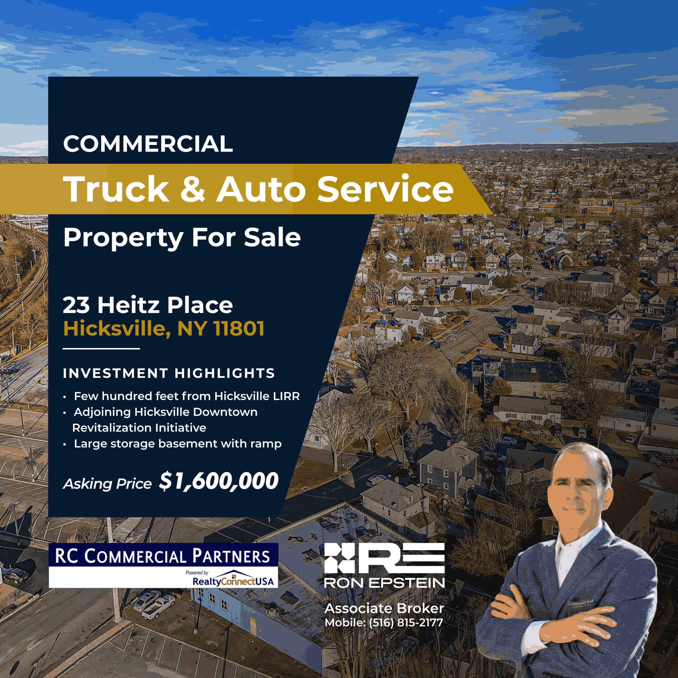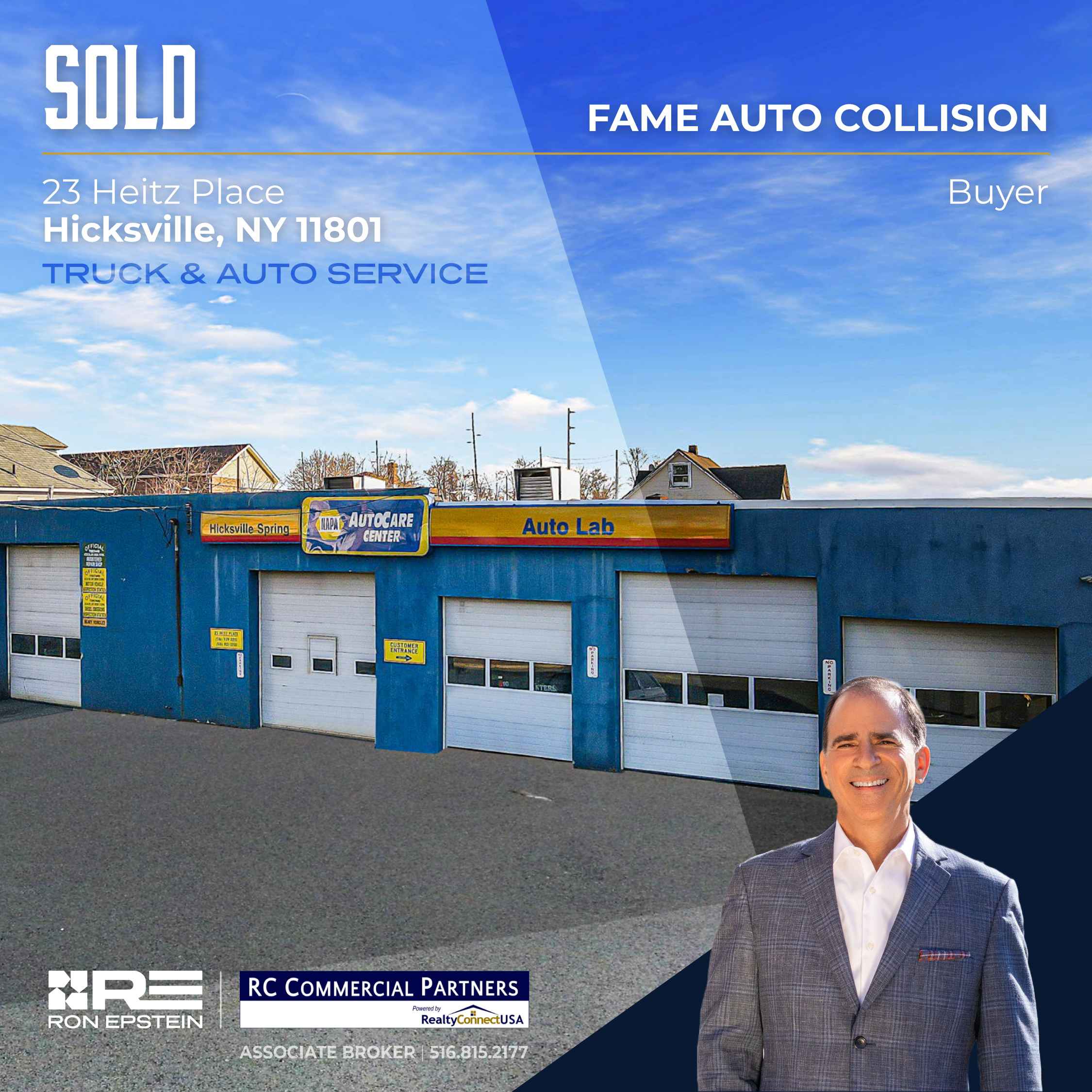 Mirabella & Castaldo LLC, purchased 23 Heitz Place in 2003 to run their new spring & brake business. Twenty years later, having sold the business, they no longer needing their 7,225 square foot repair shop, and retained Ron Epstein of RC Commercial Partners to market & sell the property.